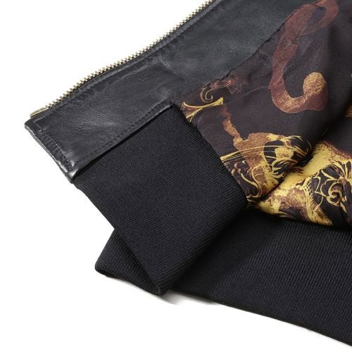 【服装】VERSACE JEANS COUTURE/VERSACE JEANS COUTURE 男士V字徽标刺绣复古拉链短款皮衣夹克 76GAVP06 CPPS3